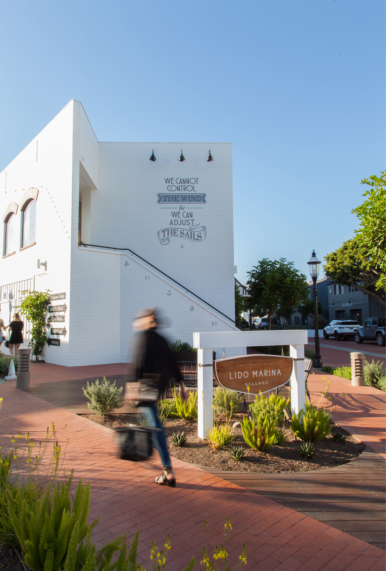 Beyond wayfinding, RSM Design also curated public art and murals that enhance the village’s character, using nautical symbols and inspirational maritime quotes to reflect the spirit of the harbor. These artistic elements add a layer of storytelling, inviting visitors to engage with the space in a more meaningful and memorable way. Through this thoughtful combination of environmental graphics and public art, RSM Design helped transform Lido Marina Village into a vibrant and iconic Orange County destination.